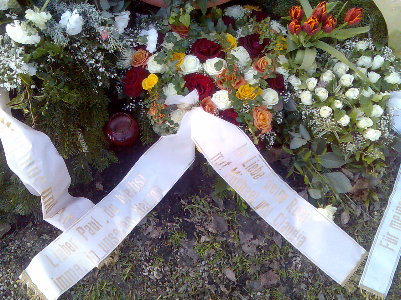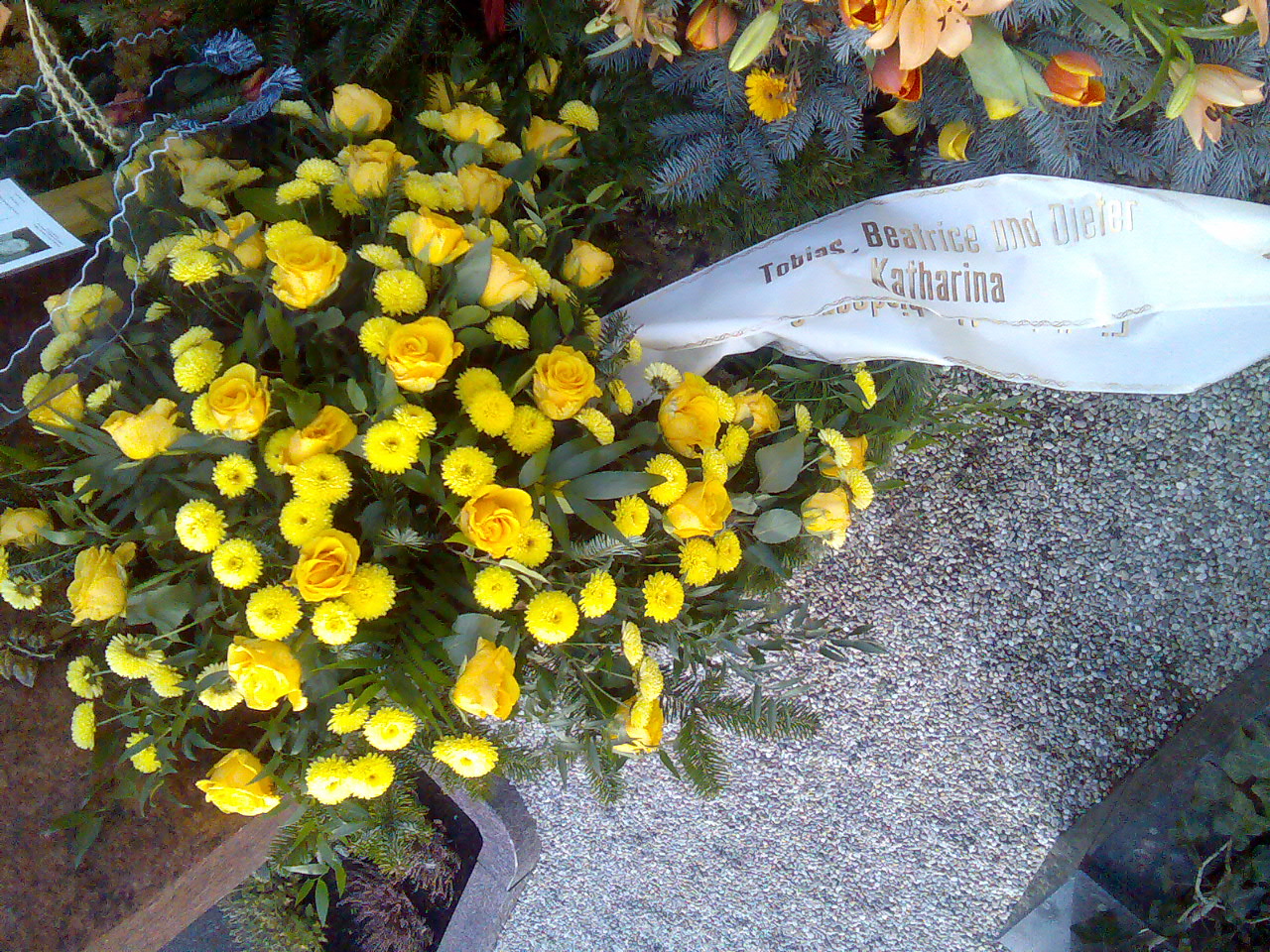 Der gelbe Kranz ist von Tobi und Familie, der rote von Pap und mir. |